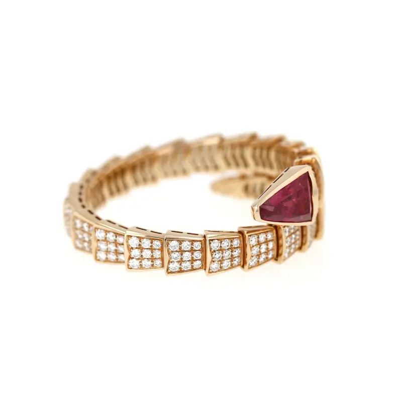 Be the first to review “Bvlgari 18K Rose Gold Red Tourmaline and Diamond Solitaire Bangle”