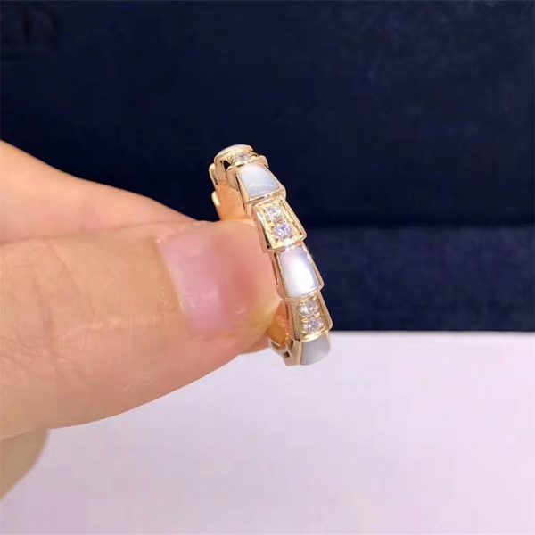 Bvlgari Serpenti band Ring in 18kt rose gold with Mother of Pearls and pavé diamonds (0.25 ct).