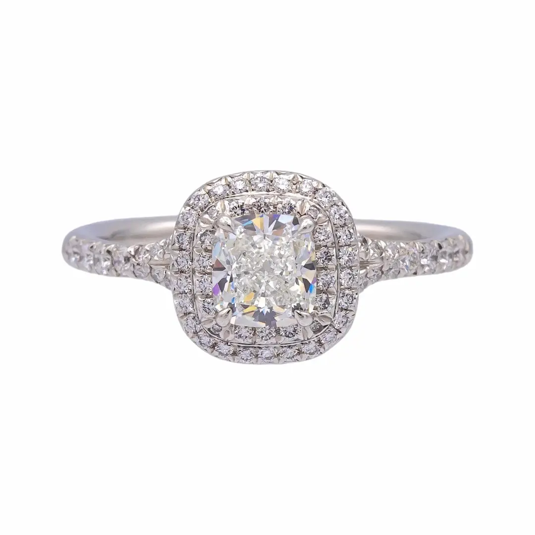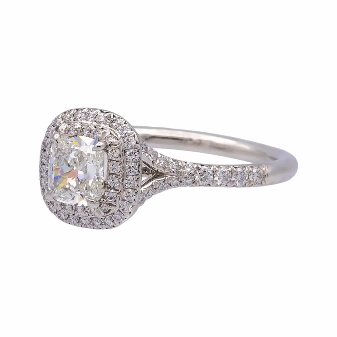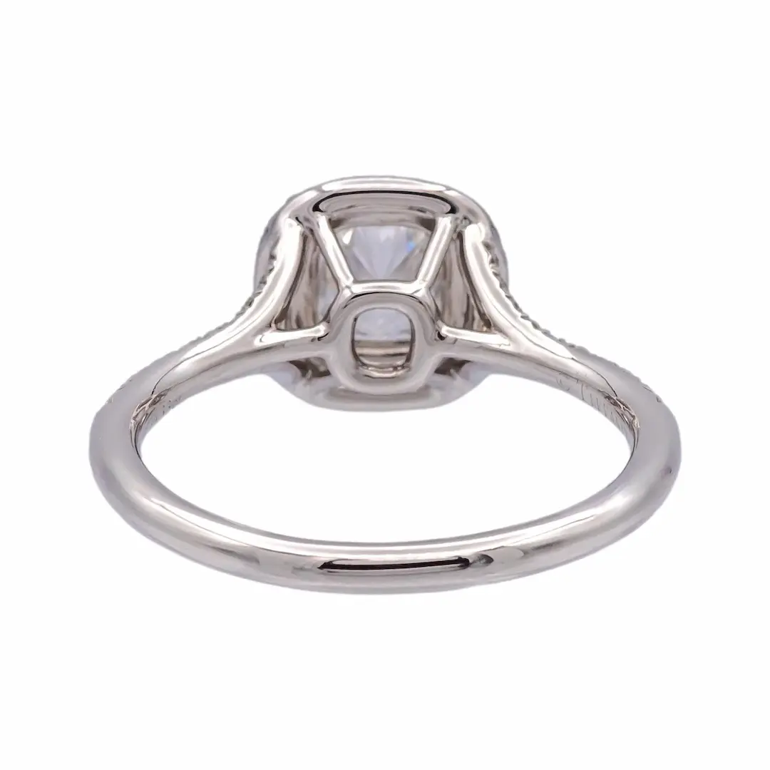 This Platinum 1cts Cushion Lab Diamond Engagement Ring is designed for those who seek timeless elegance with modern value. Featuring a stunning D color and VVS2 clarity 1ct cushion cut lab grown diamond, this ring delivers exceptional brilliance with a soft, romantic shape that is highly sought after in today’s market.