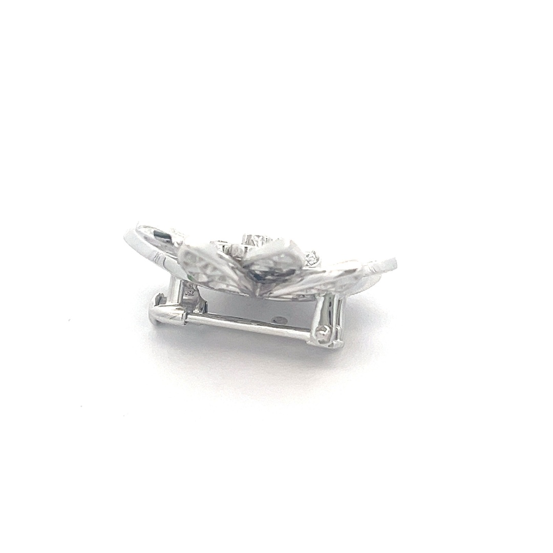 This 18K Van Cleef & Arpels Lotus hallmark clasp, small model and pin back for clip in 18k white gold.